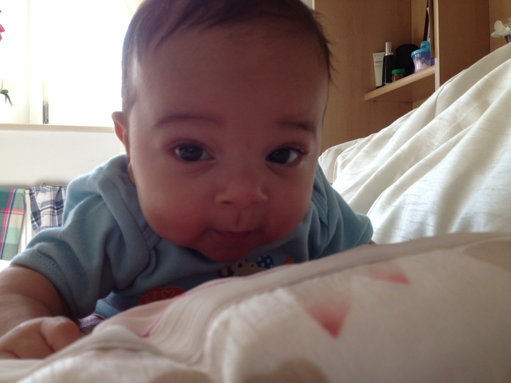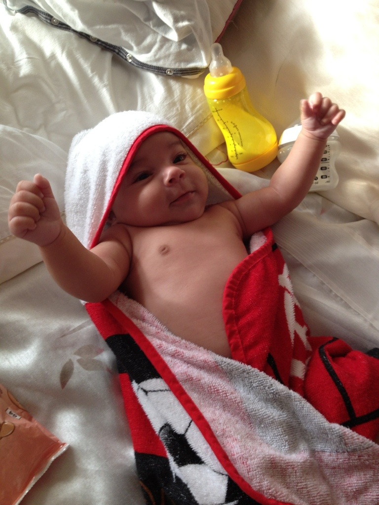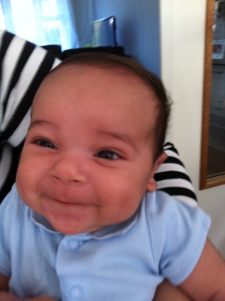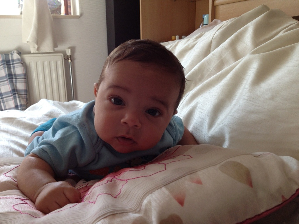 Ok, nos últimos dias o David cresceu, engordou (quase 6kg agora), passeou de barco, viu os moinhos holandeses, começou a sorrir pra todo mundo, parece que quer falar, só quer dormir no colo :P, lambeu um pêssego, se lambuzou todo, tomou a primeira vacina, gosta de ficar de pé na nossa barriga e andar, continua fazendo caras e bocas, dormiu quase noites inteiras, ficou acordado noites inteiras, conheceu o médico de família, só quer brincar durante o dia, olha com muita atenção pra tudo, tá começando a parecer um pouco com a mãe, ama levantar os braços (acho que ele acha que é um super-man, quer dizer, baby), está cada vez mais esperto…