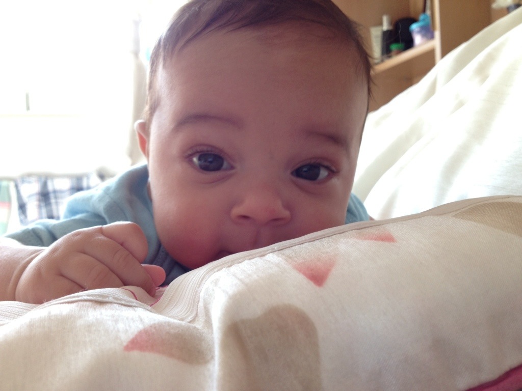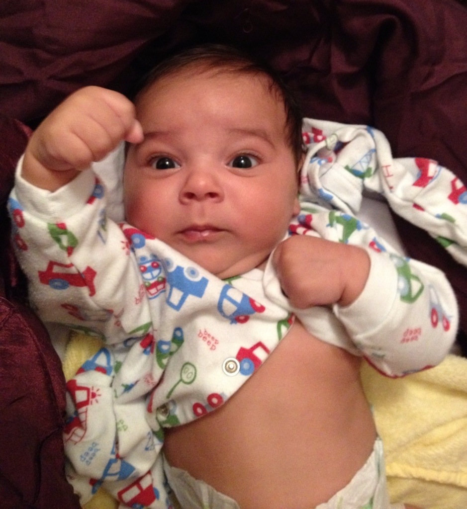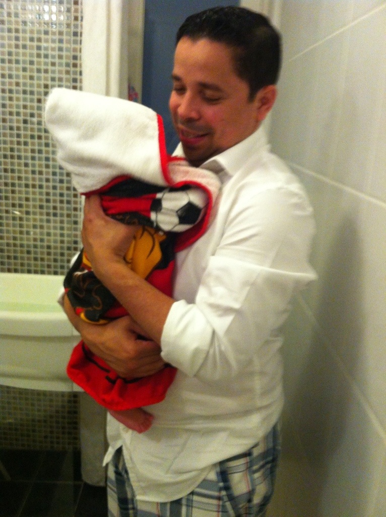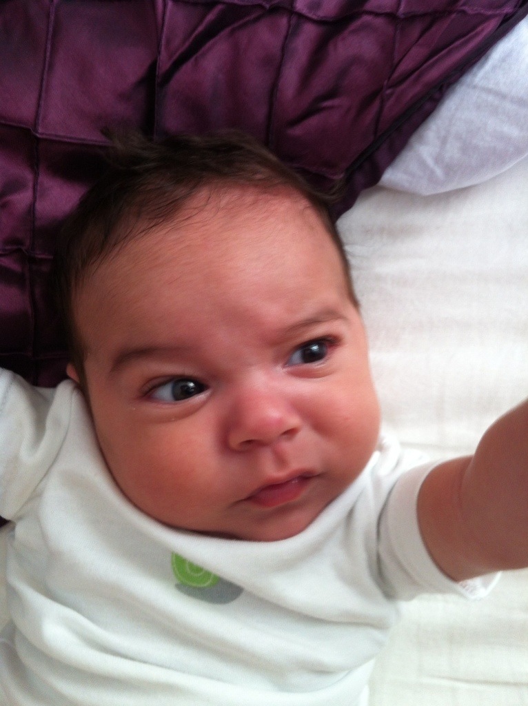 Ok, nos últimos dias o David cresceu, engordou (quase 6kg agora), passeou de barco, viu os moinhos holandeses, começou a sorrir pra todo mundo, parece que quer falar, só quer dormir no colo :P, lambeu um pêssego, se lambuzou todo, tomou a primeira vacina, gosta de ficar de pé na nossa barriga e andar, continua fazendo caras e bocas, dormiu quase noites inteiras, ficou acordado noites inteiras, conheceu o médico de família, só quer brincar durante o dia, olha com muita atenção pra tudo, tá começando a parecer um pouco com a mãe, ama levantar os braços (acho que ele acha que é um super-man, quer dizer, baby), está cada vez mais esperto…