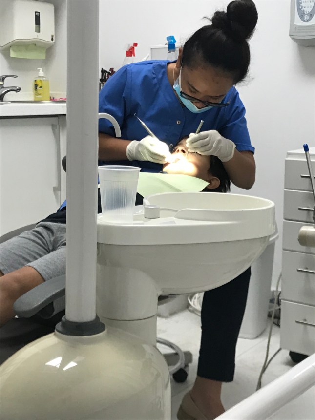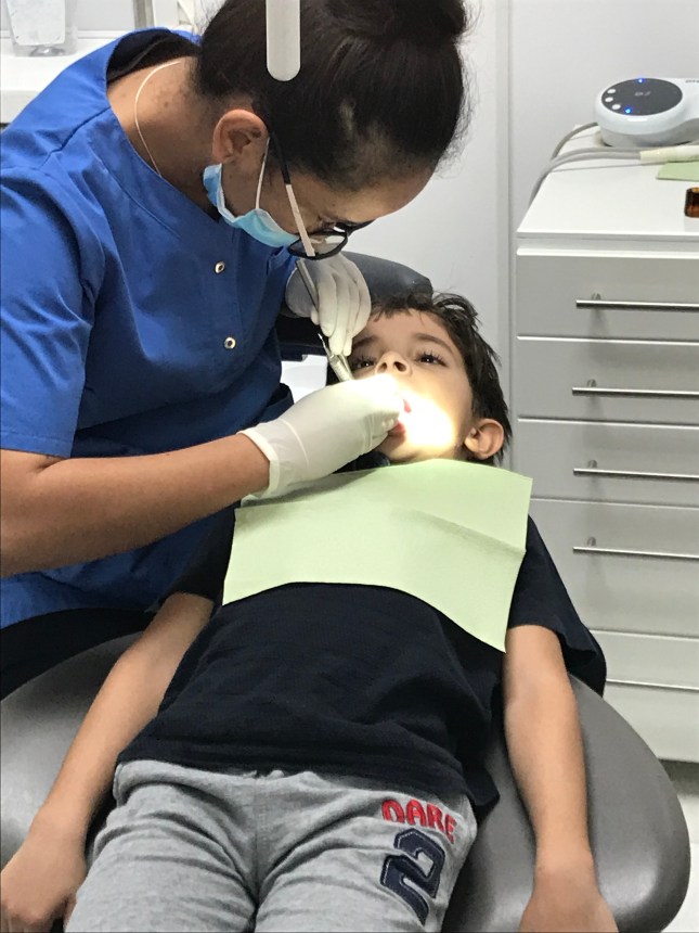 Interessante é que ele ficou quietinho durante o atendimento. Ele até que gosta de ir ao dentista.