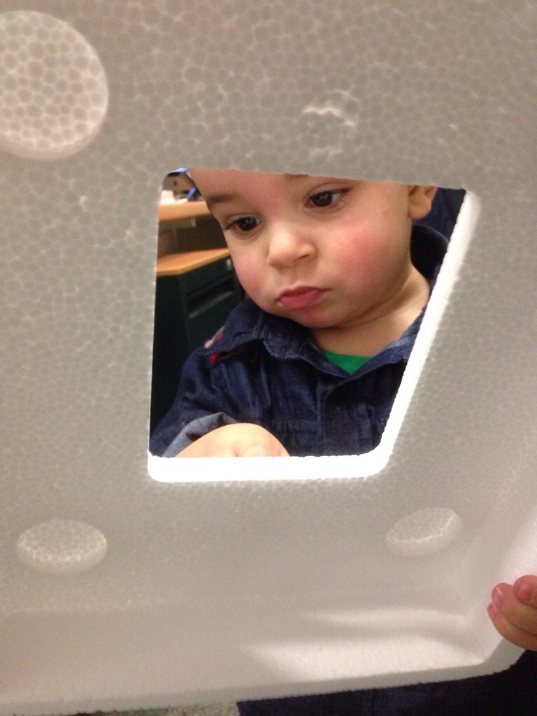 Coloquei inventou entre aspas pelo fato de eu já ter visto outros bebês fazendo isso. O intrigante é que eu vi mas o David não.